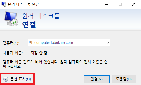 - 실행시 특정 옵션을 추가하여 원격 데스크탑을 실행